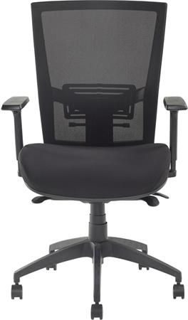 Irodai szék, karfás, fekete szövetborítás, feszített hálós háttámla, fekete lábkereszt, MAYAH "Radar III", fekete