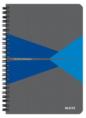 Spirálfüzet, A5, kockás, 90 lap, PP borító, LEITZ "Office", szürke-kék