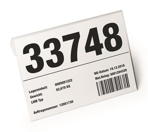 -átlátszó PET kemény fóliából készült, hajtással ellátott irattartó tok, mely alkalmas kartondobozok, dobozok vagy más tárolóedények fölé függesztésre